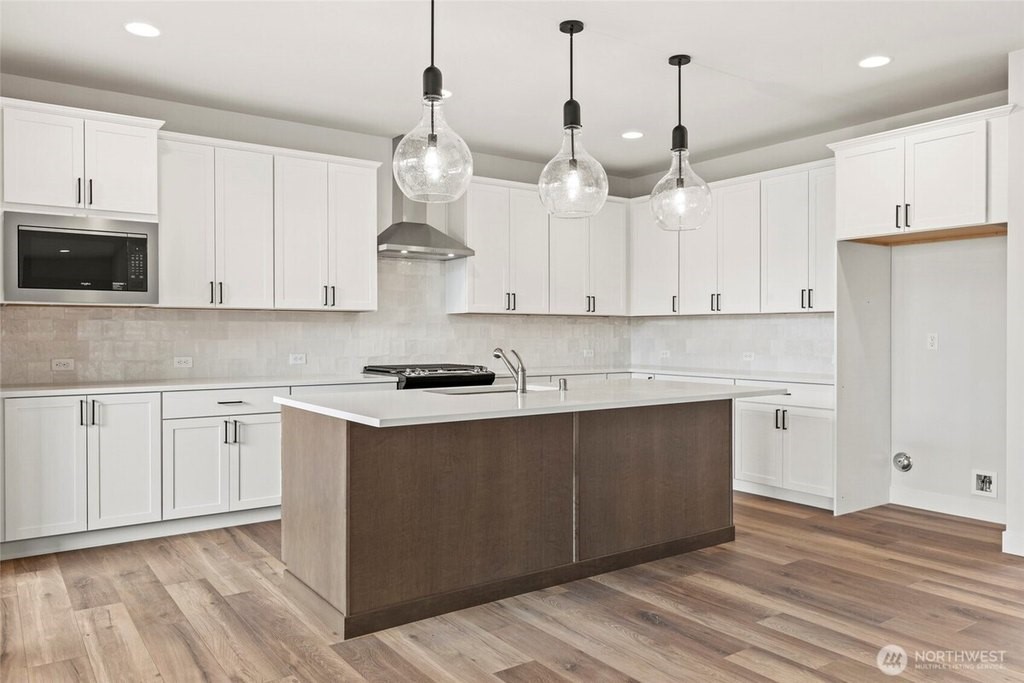 Multi-Gen Living! New home w/modern finishes by local award-winning builder, JK Monarch. Our new 3340sf layout provides space for everyone with a central kitchen, dining and great room along with a private Multi-Gen space offering a private bedroom, 3/4 bath, living room w/ small kitchenette, W/D hook-up, private covered patio and separate entry. Gourmet kitchen boasts quartz countertops, full-height tile backsplash, 36" soft-close shaker cabinets, premium Whirlpool appliances including 30" gas range & SS canopy hood. Primary suite offers oversized bedroom, 2 walk-in closets pluz an ensuite w/slide-in tub, tiled shower & quartz counters. Leisure Loft, 2 bedrooms, full bath & laundry room finish out the upstairs. Energy-efficient features include W/D, heatpump (A/C), hybrid wtr heater & EV charger pre-wire. Open-concept layout, 9' ceilings, wrought iron rails, LVP flooring & modern linear fireplace, designer selected lighting. Enjoy your 3 car garage, professionally landscaped front yard & spacious covered outdoor living. Close to JBLM & Canyon Rd for commuting. Community will have a future clubhouse. $20K Your Way Incentive. Ask for details. Interior pics are not of actual home/floorplan and may contain upgrades. Colors and specs may vary. Still time to make your own selections!